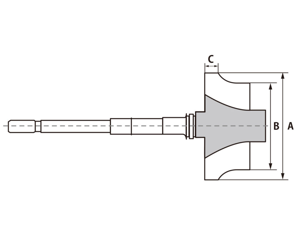 コンプレッサーホイールは、ノーマル形状と同じサイズのBilletコンプレッサーホイールからIHI-Performance(鋳造)と同サイズBillet、2835、3037等までご用意しております。