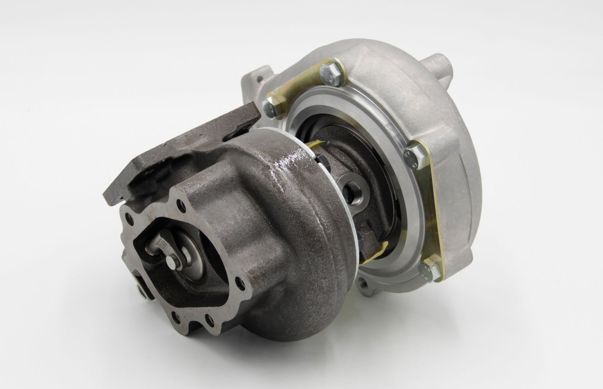 コンプレッサーホイールはBillet(鍛造)、タービンホールはノーマルの11枚から12枚のTD05Hタイプを使い、2530、GT-RSに比べ低中回転域のトルク、レスポンスの向上を図っております。